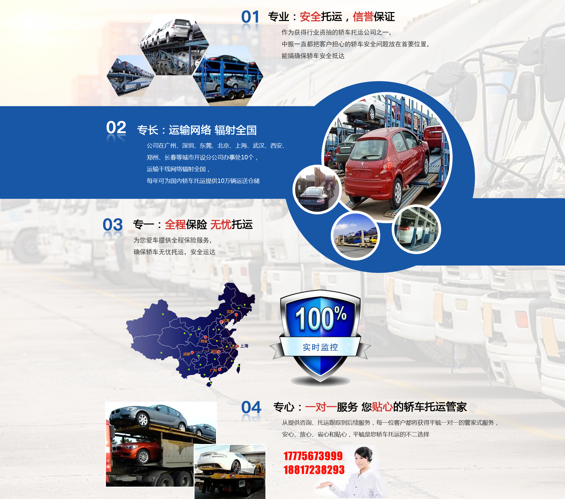 公司承諾:同等的價格,我們比速度,同等的速度,我們比服務,同等的服務,我們比誠信!公司全體員工牢記并且踐行著“尊客、愛車、守信、認真、快速、價平”的服務理念,珍惜客戶給我們的每一份委托,用心處理轎車托運的每個環節,讓您的每一次所托都感到物超所值.....